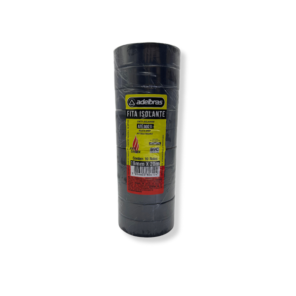FITA ISOLANTE ANTICHAMA 19mm X 20m - PRETA - PACOTE C/10