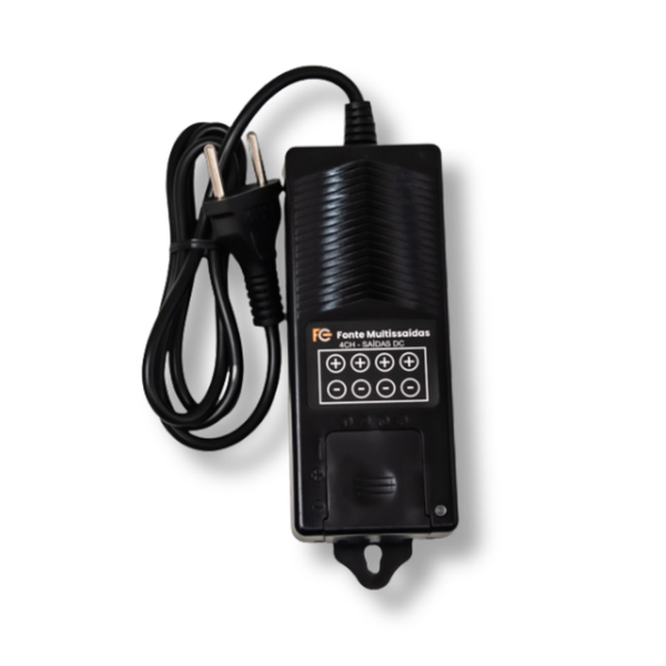 A fonte de alimentação AC/DC multissaída da FC Fontes possui 4 canais com entrada automática de 90 a 240 Vac, não necessitando de seleção por chave da tensão de entrada. Possui também filtro especial contra ruídos e proteção contra surtos e sobrecorrente da rede elétrica. Sua tensão de saída pode ser ajustada, permitindo a instalação em longas distâncias e vários equipamentos ao mesmo tempo.